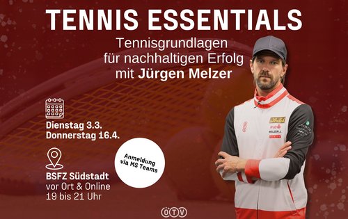 Als früherer ATP-Top-Ten-Spieler im Einzel und Doppel und langjähriger Weltklassemann ist Jürgen Melzer nicht nur der dritterfolgreichste rot-weiß-rote Tennisprofi aller Zeiten, sondern zudem Österreichs Davis-Cup-Rekordspieler. Der ÖTV-Sportdirektor führte Joel Schwärzler an die Spitze der Jugendweltrangliste, als Kapitän das KURIER Austria Davis Cup Team im letzten Jahr zu den Davis Cup Final 8 der besten acht Nationen der Welt – und am vergangenen Wochenende mit dem erfreulichen 3:2-Sieg in Japan in die zweite und letzte Qualifikationsrunde zum Finalturnier 2026. Aber auch ihr könnt jetzt von der Expertise und den umfassenden, vielschichtigen und jahrzehntelangen Erfahrungen des Niederösterreichers profitieren. Denn am Dienstag, 3. März 2026, sowie am Donnerstag, 16. April 2026, findet im BSFZ Südstadt (Liese-Prokop-Platz 1 in 2344 Maria Enzersdorf) jeweils von 19:00 bis 21:00 Uhr eine Fortbildung mit dem 44-Jährigen statt.